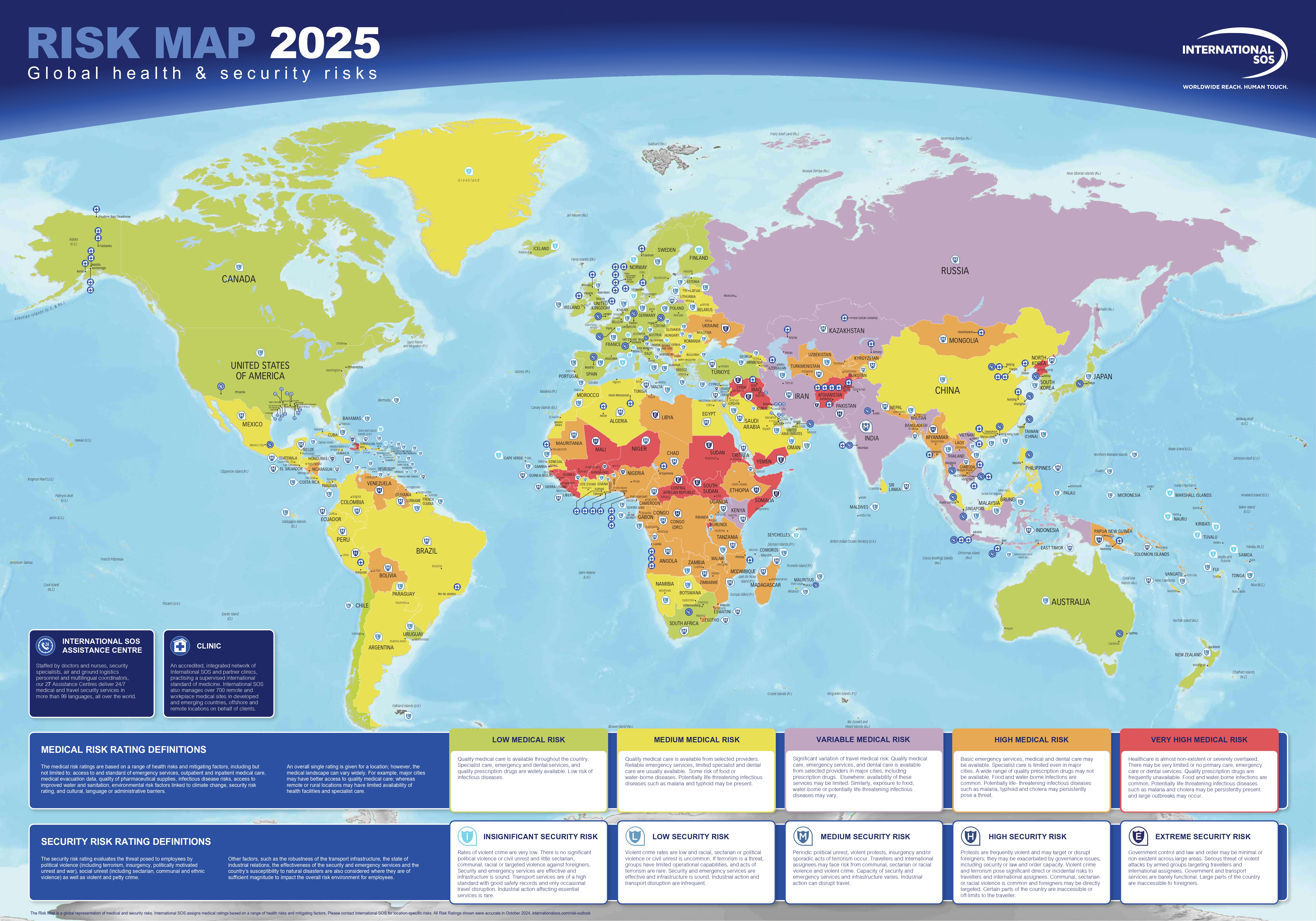 The map below, taken from our 2025 Risk Outlook Report, reflects this rising uncertainty. Compared to 2024, more destinations now fall into elevated and high-risk categories, indicating a broader increase in medical, environmental, and security pressures globally. This shift reinforces the need for a structured Travel Risk Management program—one that provides consistent, evidence-based decision-making and ensures travelers are prepared and supported wherever they go.